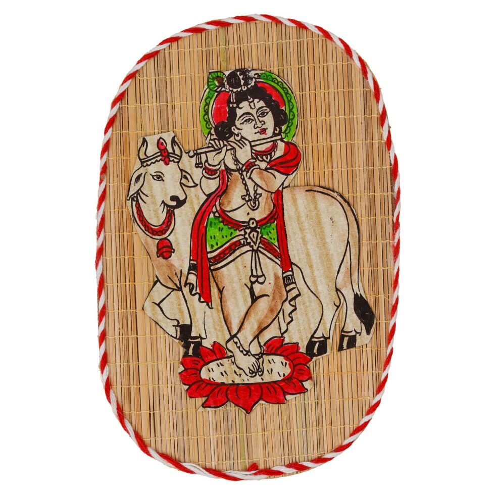 Be the first to review “Oval Shaped Design Bamboo Hand Crafted Wall Hangings Of Bal Gopal With Holy Cow For Home Decor | Bamboo Art For Wall Decor”